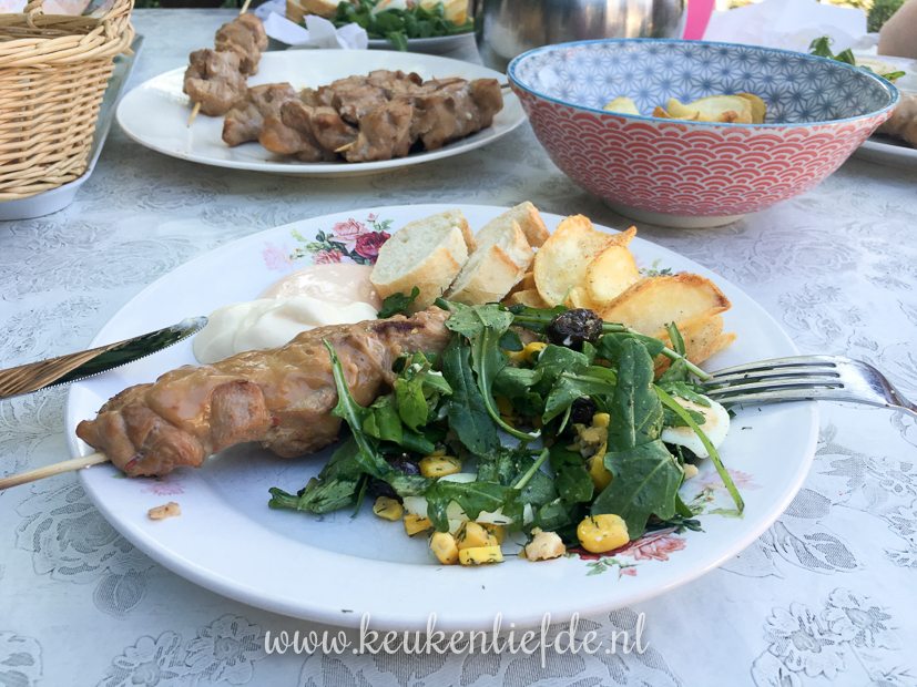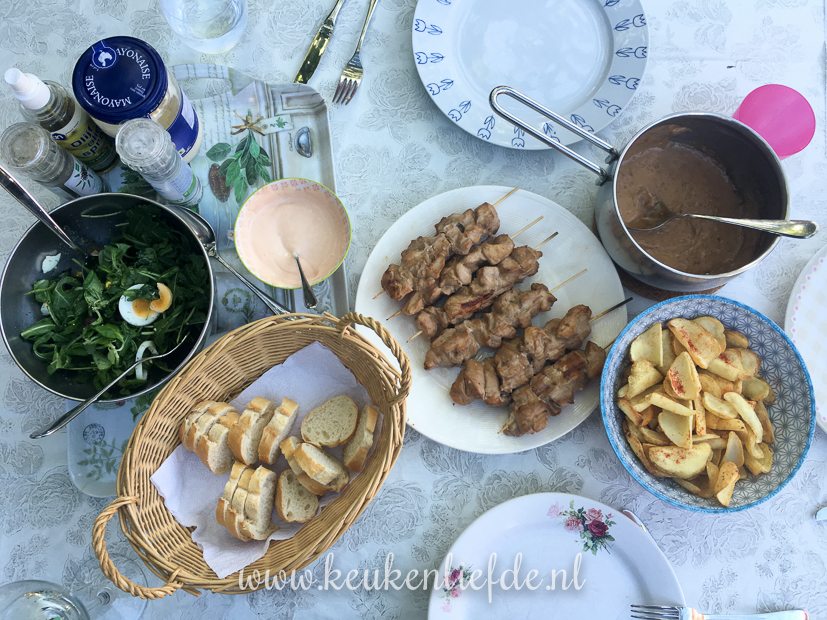 Op het menu staan zelfgemaakte kipsaté, potato dipperz, sla, stokbrood en pindasaus. Wat een cadeautje, zo’n dag.