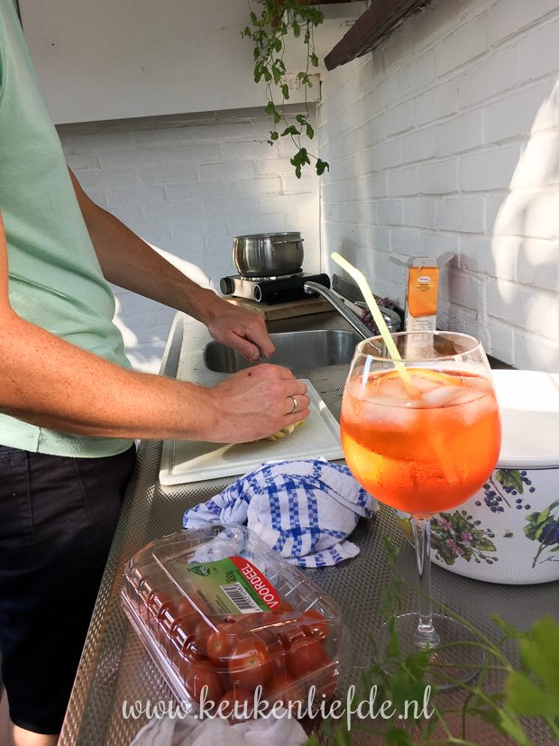We genieten van het heerlijke weer, Aperol Spritz en van Johan zijn goddelijke macaronisalade