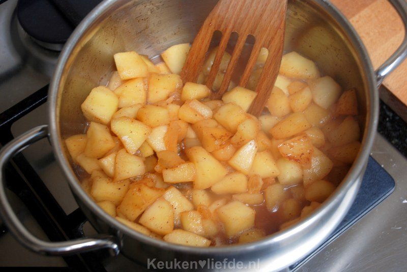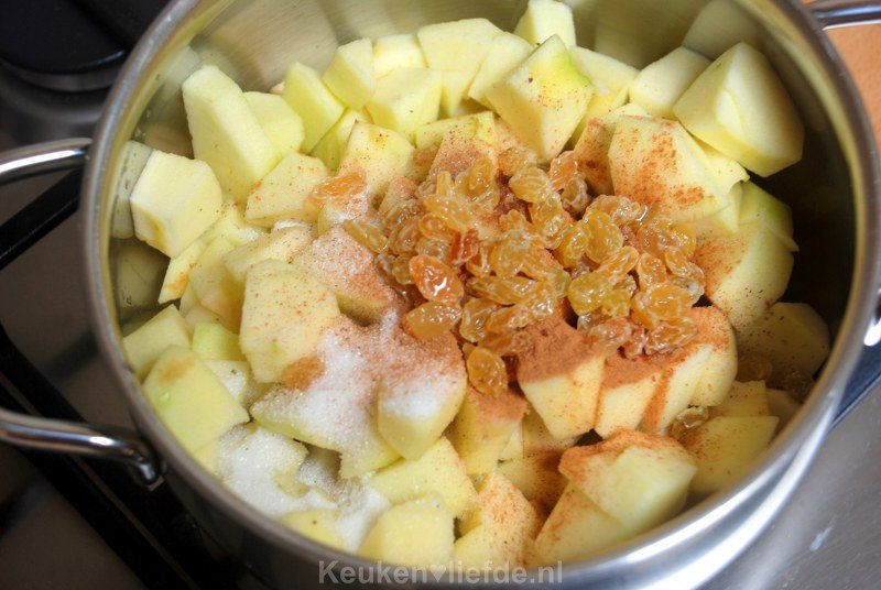 Ik vind deze vulling voor appeltaart vele malen lekkerder dan ongekookte appelstukjes, omdat het een heerlijk zacht en smeuïg resultaat geeft.