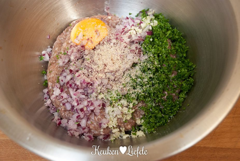 - 3 takjes platte peterselie, alleen de blaadjes, fijngehakt