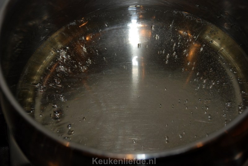 Meng de kristalsuiker en het water in een pannetje en breng dit langzaam en al roerend aan de kook.