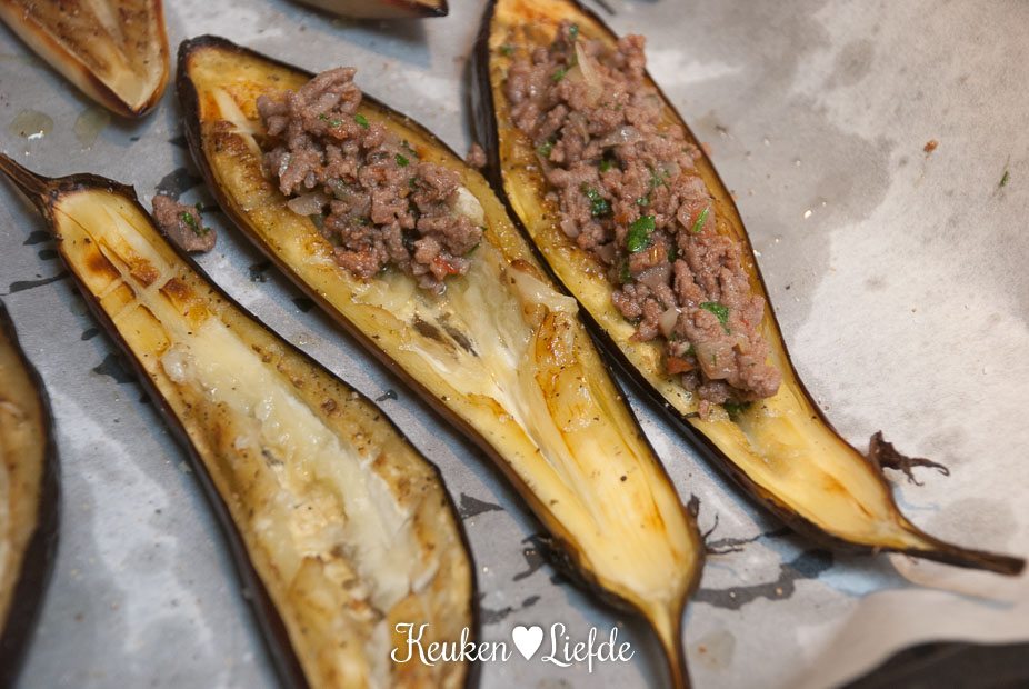 Gevulde mini-aubergine met gehakt