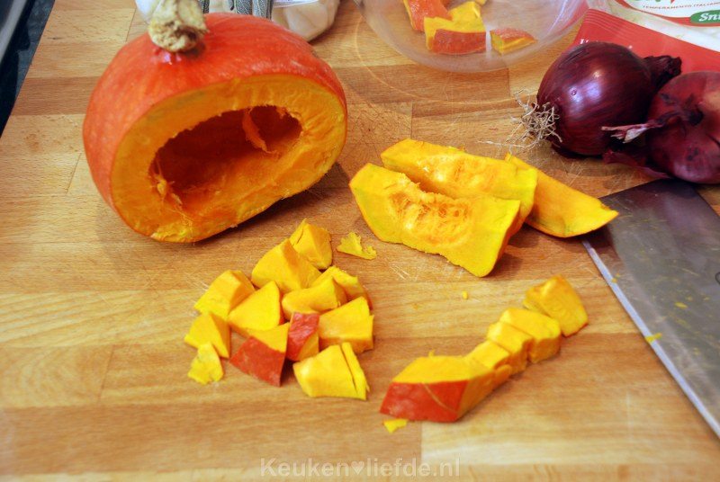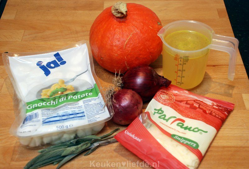 Gisteravond stond dit gerecht op het menu. Met de pompoen erg lekker, maar de gnocchi was niet zo ons ding. Volgende keer gaat er gewoon pasta doorheen denk ik, of misschien krieltjes…