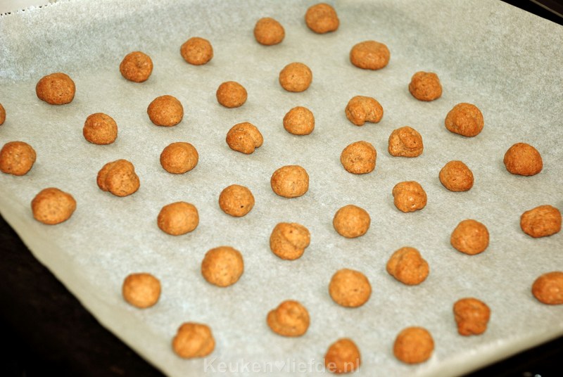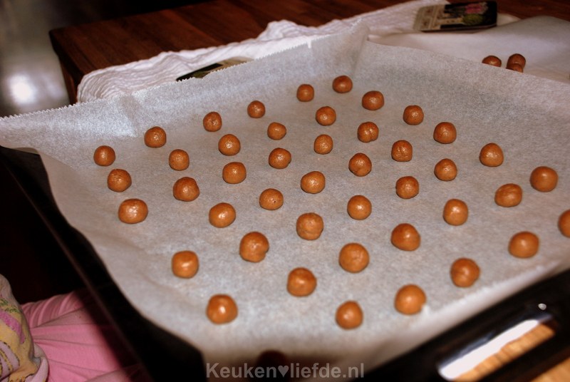 Verwarm de oven voor op 175 graden. Snijd met een mes in gelijke stukjes en rol er met je handen ronde bolletjes van.