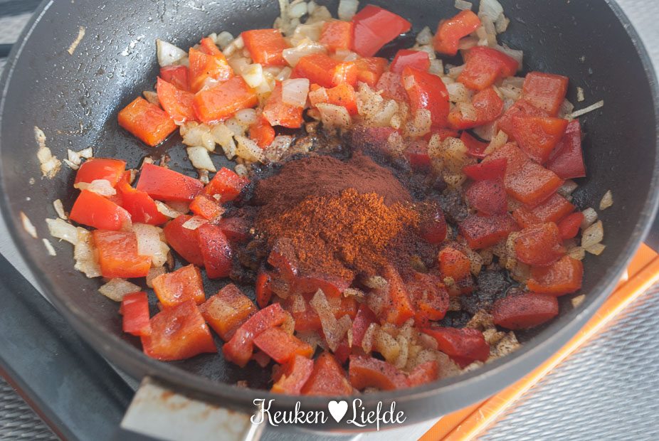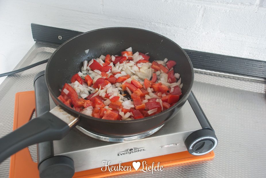 - 1 rode paprika, zaadlijst verwijderd en in blokjes gesneden