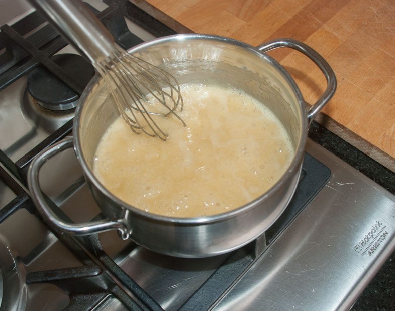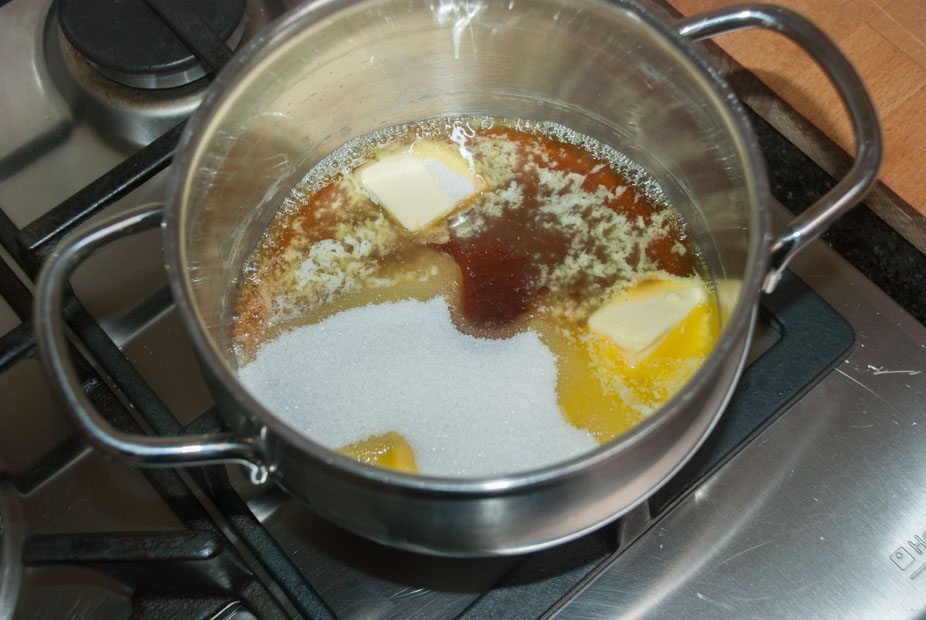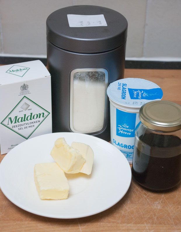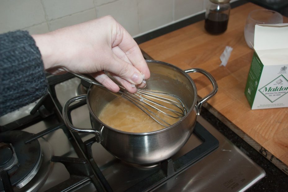 De salted caramel is nu klaar voor gebruik. Overgebleven karamelsaus kun je afgedekt bewaren in de koelkast.
