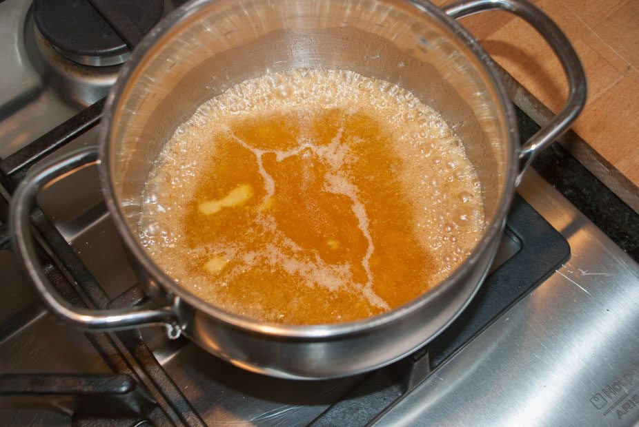 De salted caramel is nu klaar voor gebruik. Overgebleven karamelsaus kun je afgedekt bewaren in de koelkast.