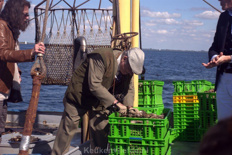 Er mag weer gevist worden op creuses, oftewel Zeeuwse oesters (Crassostrea gigas), en op platte oesters (Ostrea edulis) – de Rolls-Royce onder de oesters, volgens Cees van Liere, voorzitter van de Nederlandse Oestervereniging. Hij is ervan overtuigd dat het een goed oesterjaar wordt. De openingsdag was in elk geval meer dan goed – er was volop gezelligheid, volop zon, volop champagne … en er waren oesters in overvloed. Ik at mijn allereerste oesters ooit!