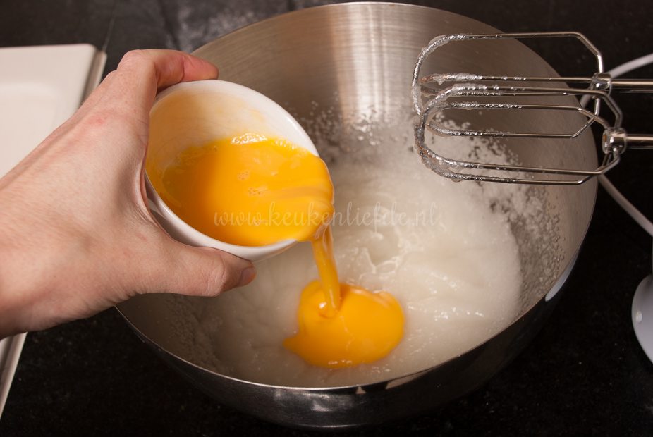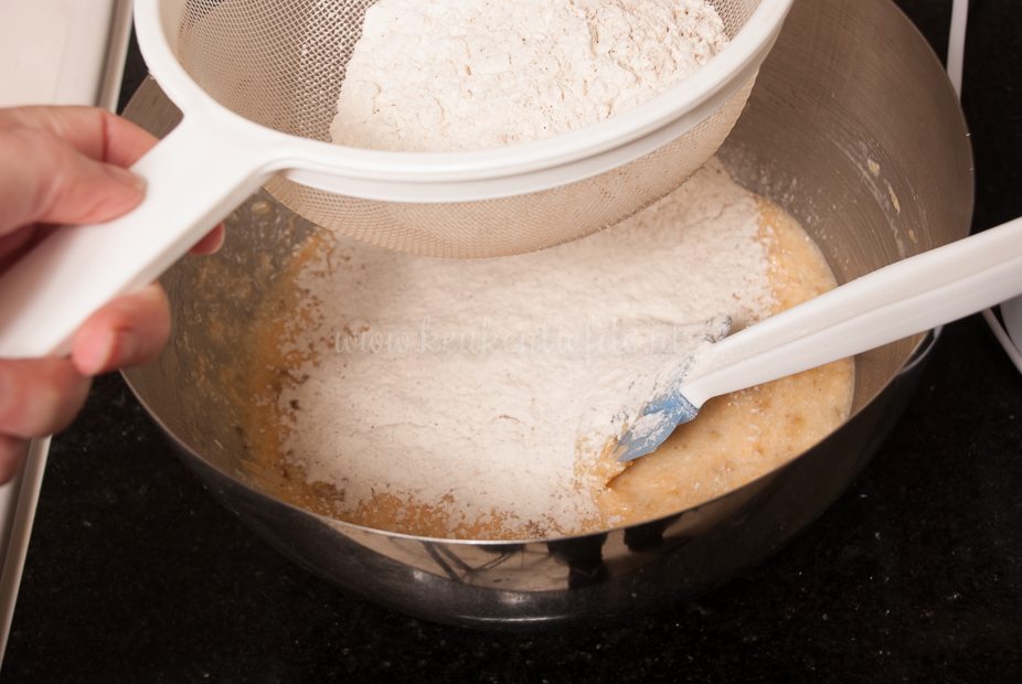 Zeef de bloem met bakpoeder, zuitveringszout en specerijen. Klop het ei en de eidooier door elkaar.