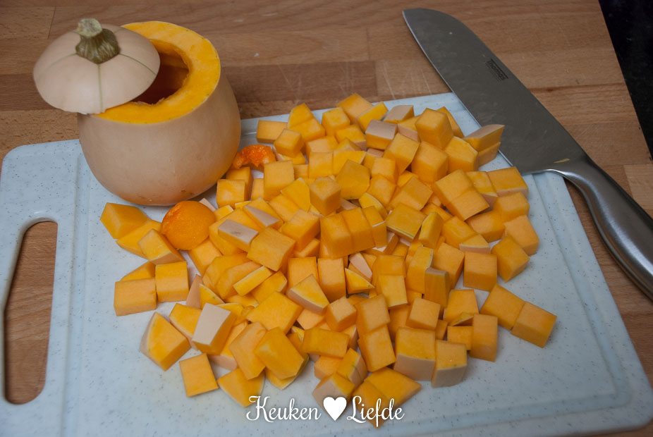- 1/2 flespompoen, of ca. 400 g kant-en-klaar gesneden pompoenblokjes uit de koeling