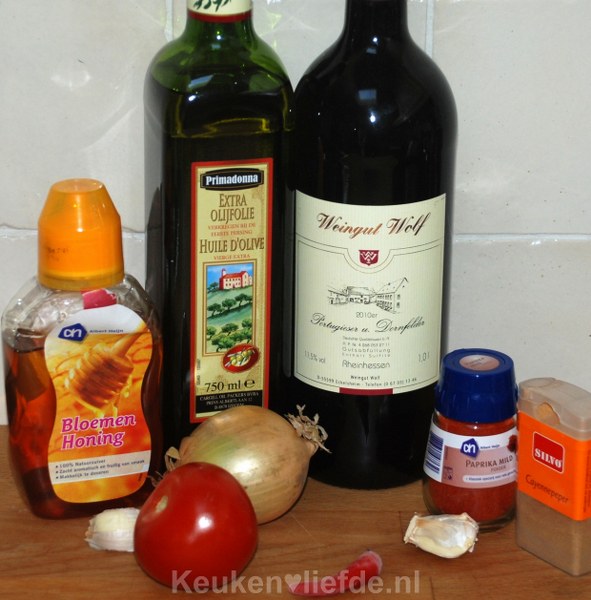 1. Ik schat dat je het voor een kilo vlees af kunt met 1,5 keer het marinaderecept.