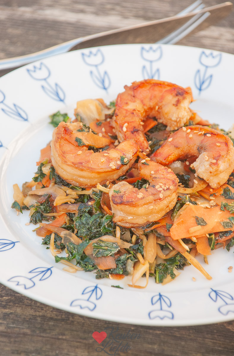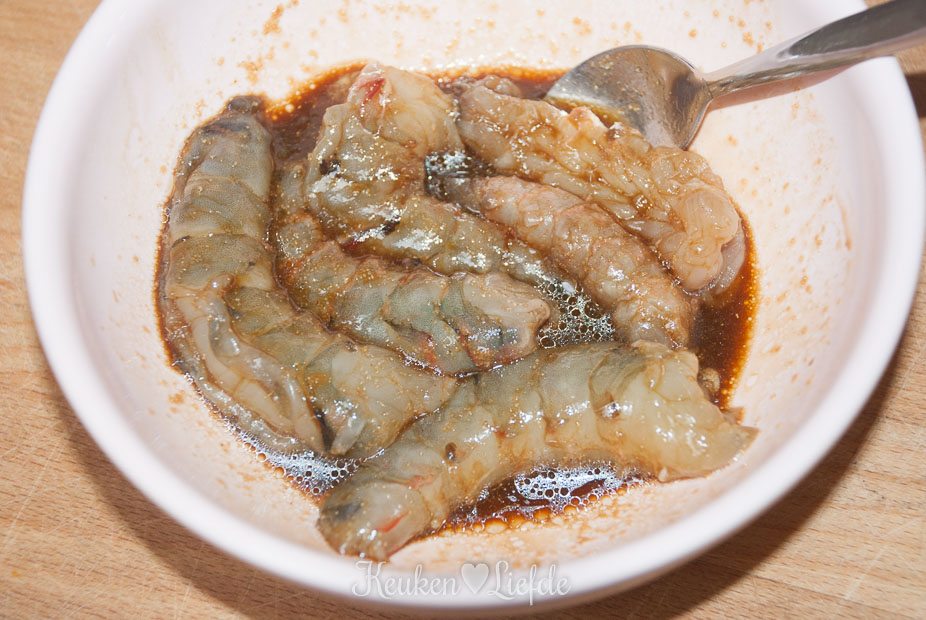 - 8 grote rauwe garnalen, ongepeld (of gepeld en schoongemaakt)