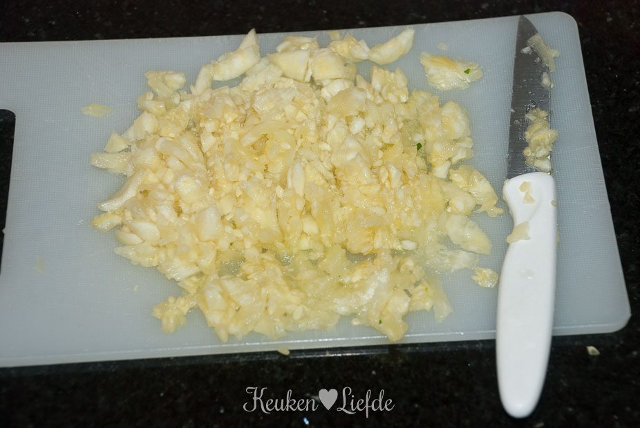 - 1 teen knoflook, gepeld en fijngehakt