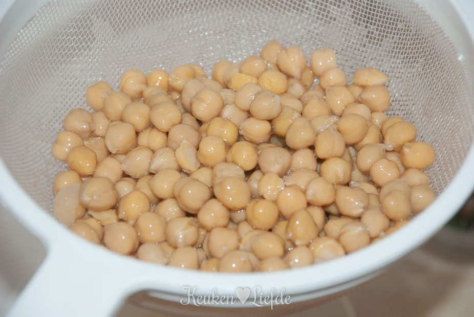 Verwarm de oven voor op 200 graden. Laat de kikkererwten goed uitlekken in een zeef.