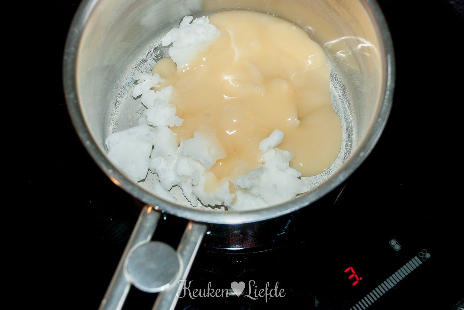 Laat de kokosolie samen met de honing in een pannetje smelten.