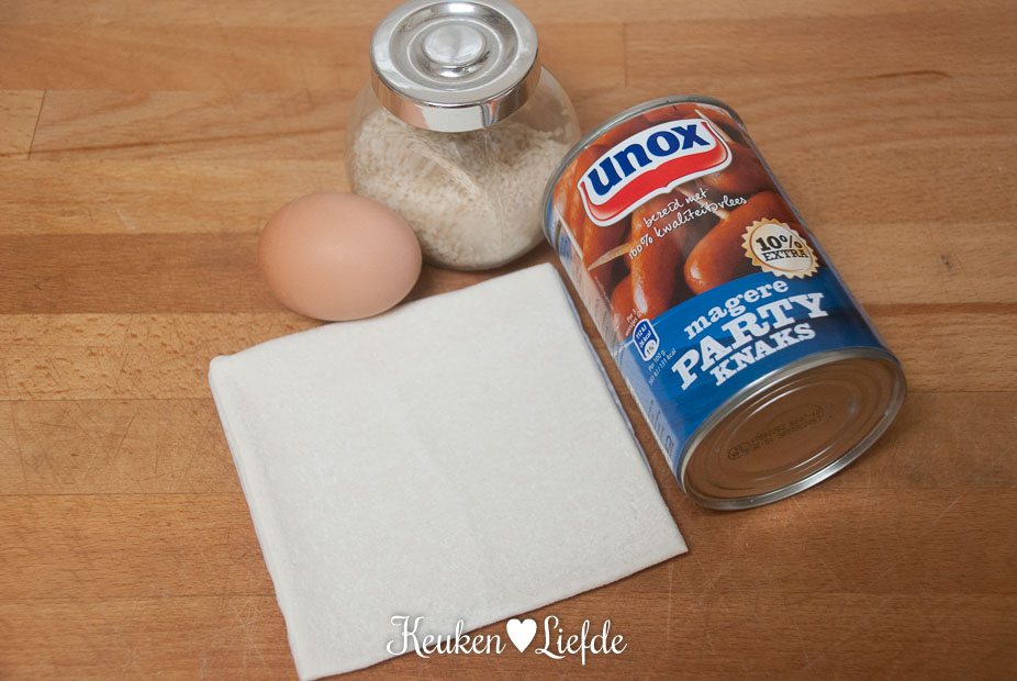 Je hebt slechts twee luttele ingrediënten nodig, die je zowieso altijd op voorraad moet hebben: (diepvries)bladerdeeg en een blik knakworstjes, of in dit geval partyknaks. Serveer ze met ketchup en mosterd en laat het feest losbarsten!