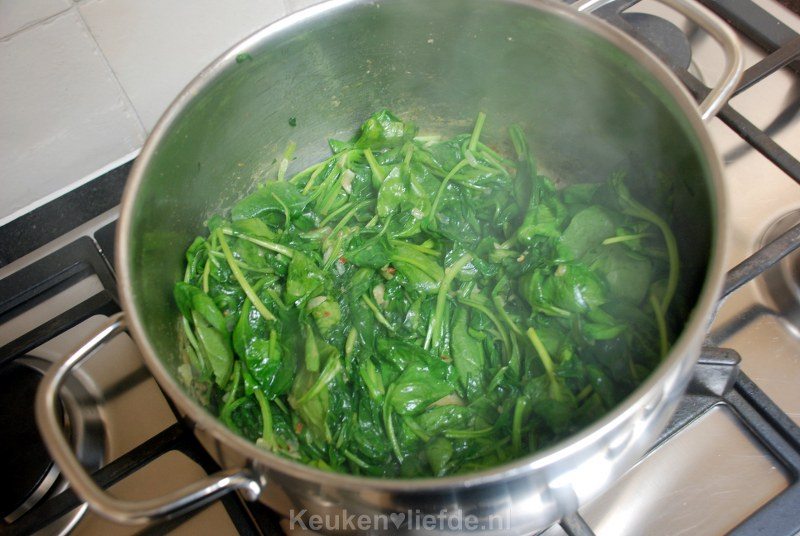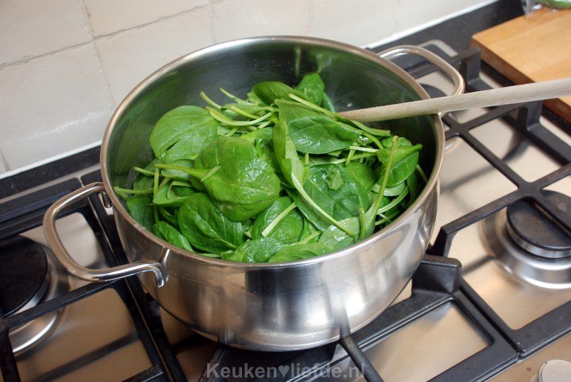 - 600 g spinazie, gewassen en drooggedept