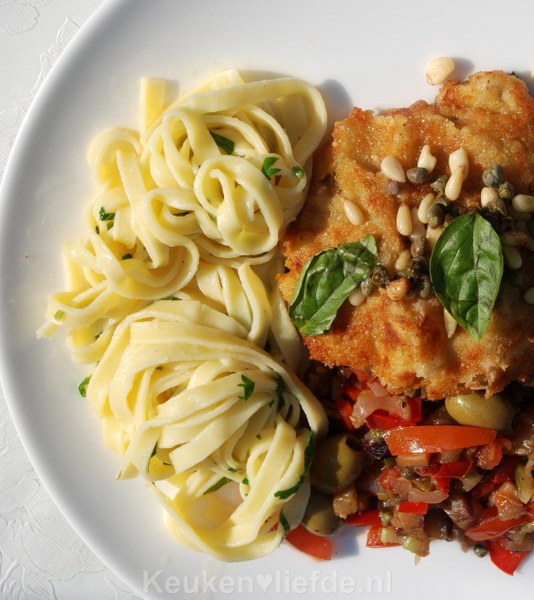 Of als bijgerecht met een kalfsschnitzel en caponata