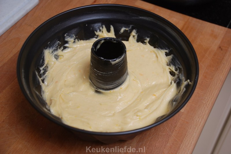 Schep het beslag in de tulbandvorm en zet hem in de oven.