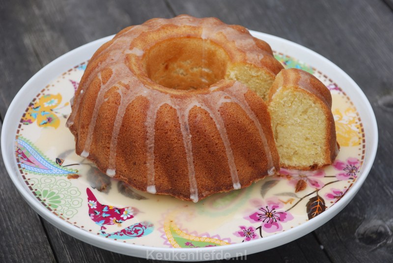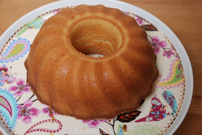 Als de tulband helemaal is afgekoeld giet je het sinaasappelglazuur eroverheen. Serveer meteen.