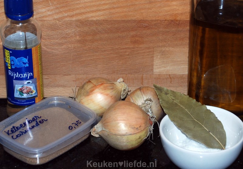 - 3 uien, gepeld en in dunne ringen gesneden