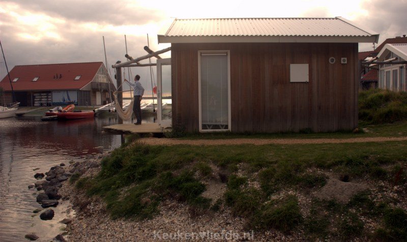Wij overnachten in een eenvoudige maar praktisch ingerichte beachlodge pal aan het Grevelingenmeer.