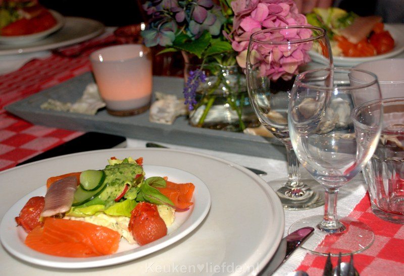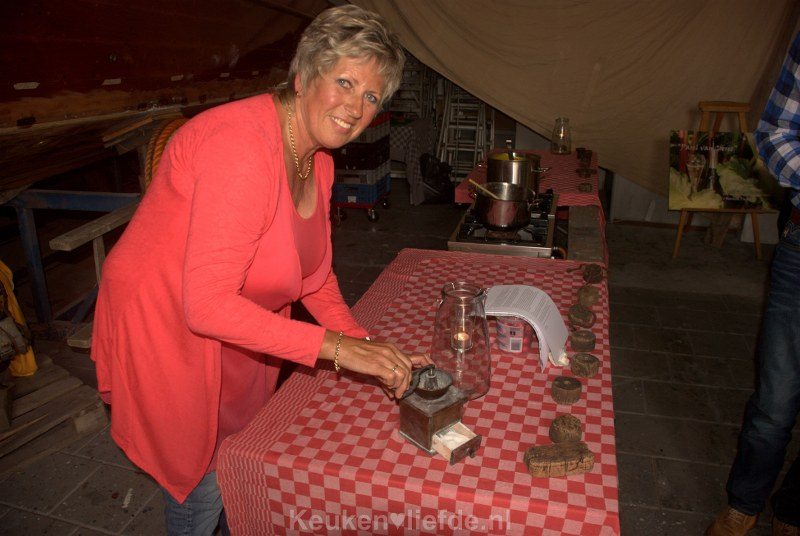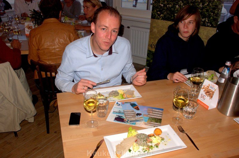 Als we met een brede smile naar binnen lopen, heet eigenaar Gydo van der Wal ons van harte welkom en krijgen we direct een feestelijk glaasje bubbels in handen gedrukt, die we diep onderuitgezakt in comfortabele loungebanken opdrinken bij de houtkachel. Supergezellig! Een perfecte opwarmer voor het smakelijke driegangenmenu, dat bereid gaat worden met alleen lokale producten uit Goeree-Overflakkee. Als we aan tafel gaan, schuiven ook de producenten van de lekkernijen die ons bord versieren gezellig aan en vertellen ons tussen de gangen door gepassioneerd en vol overgave alles wat we maar weten willen.