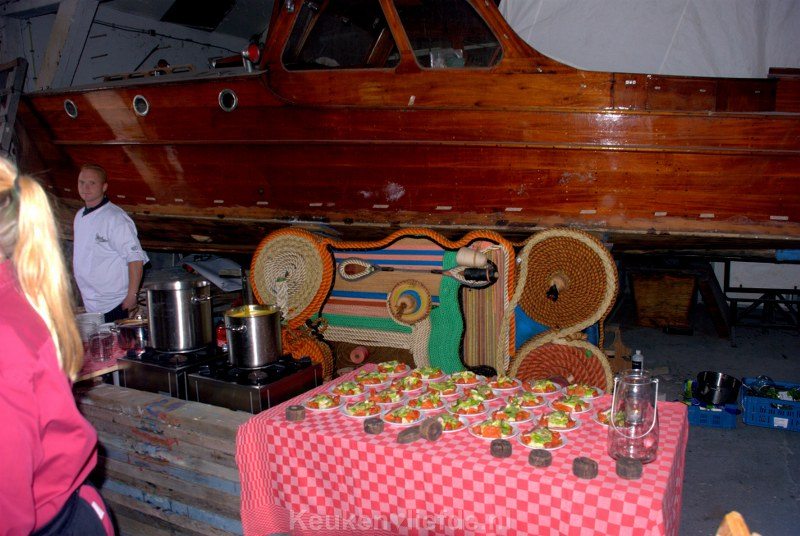De Goerese vissersvloot vaart elke maandagochtend als de rest van Nederland zich nog drie keer omdraait uit om op vrijdag- of zaterdagochtend even vroeg weer terug te keren. Wij zijn op woensdagochtend in het restaurant en dus is de haven leeg en verlaten. Maar niet getreurd, want na een spoedcursus Stellendamse garnalen pellen, krijgen we een voorproefje van wat dit restaurant op culinair gebied te bieden heeft: warm gebakken en perfect gekruide kibbeling (zoals het hoort gemaakt van verse kabeljauw), een stukje gerookte makreel en natuurlijk de handgepelde Stellendamse garnalen.