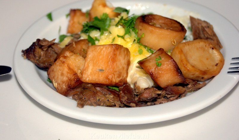 risotto met kaas van de Jerseyhoeve, stoofvlees en pastinaak,