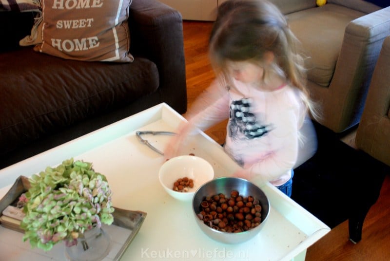 De hazelnoten zijn nu licht geroosterd en nog lekkerder om te eten!