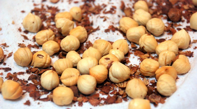 - Leg de hazelnoten op een theedoek en wrijf het velletje er voorzichtig vanaf.