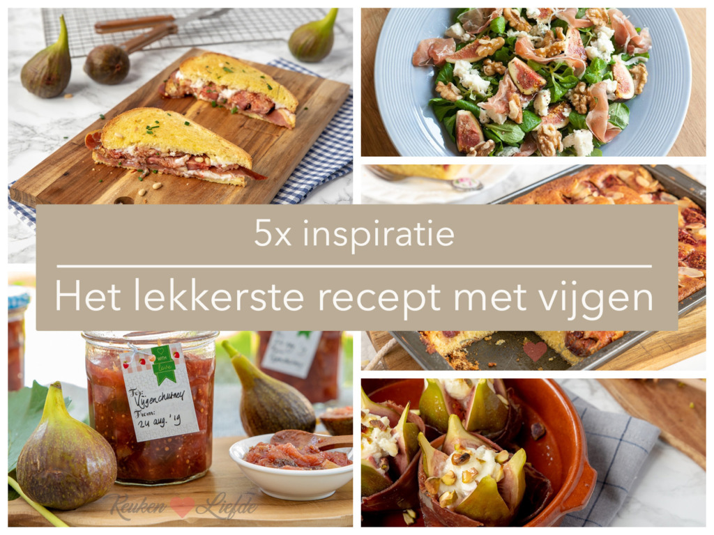 Zie je verse vijgen liggen in de winkel liggen, twijfel dan geen moment en leg ze in je mandje. Of misschien pluk je ze vers van de boom in eigen tuin. Vijgen groeien heel goed in Nederland en zijn heerlijk en gezond. Lekker om zo uit het vuistje te eten, of verwerk ze in een gerecht. Met vijgen kun je alle kanten op. Om je te inspireren heb ik 5x het lekkerste recept met vijgen op een rij gezet. Ben heel benieuwd welke jij gaat maken.