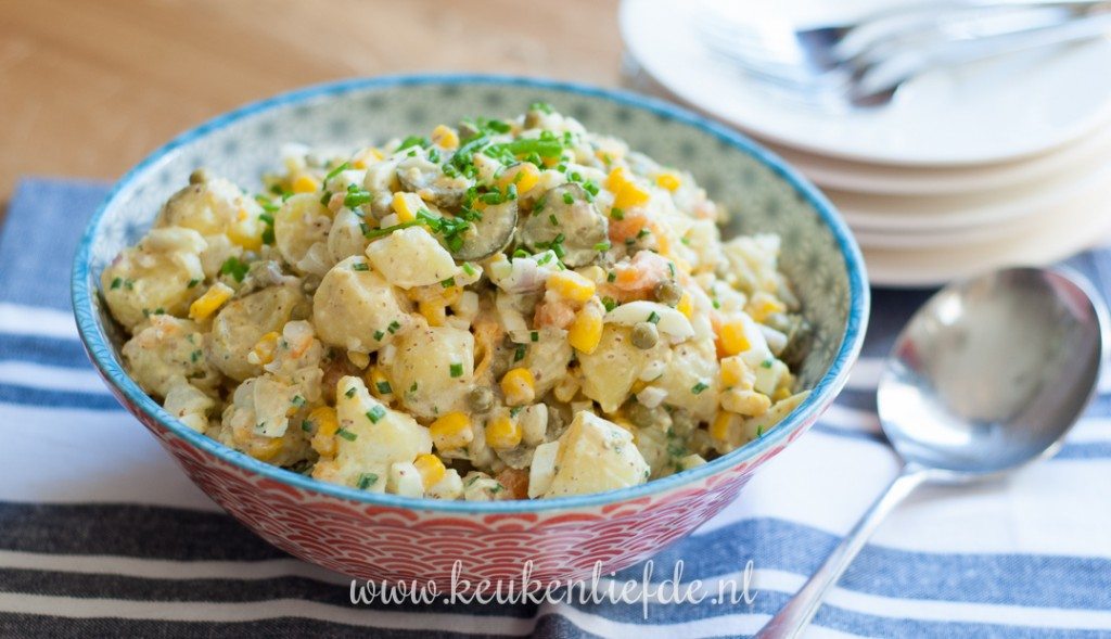 Wie is er niet dol op aardappelsalade. Iedere familie heeft wel zijn eigen recept. Er zijn veel verschillende soorten aardappel waarmee je kunt experimenteren en die voor een groot deel de smaak bepalen. Ook met de saus kun je variëren. Zo geeft mayonaise een romig resultaat, yoghurt of kwark zijn romig en fris. Ook zure room en crème fraîche zijn veelgebruikte opties. Of gebruik een combinatie. De Duitse kartoffelsalat wordt aangemaakt bouillon, olie en azijn en is daardoor wat lichter en frisser van smaak. Van deze laatste variant vind je nog geen recept op KL maar komt er binnenkort wel aan. Ook met de vulling kun je variëren maar in bijna elke variant zit wel een gesnipperd uitje en verse tuinkruiden.