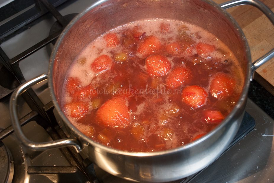 Voeg voor een fris accent de rasp van 1 citroen toe en kook mee met de aardbeien en rabarber.