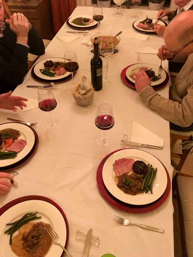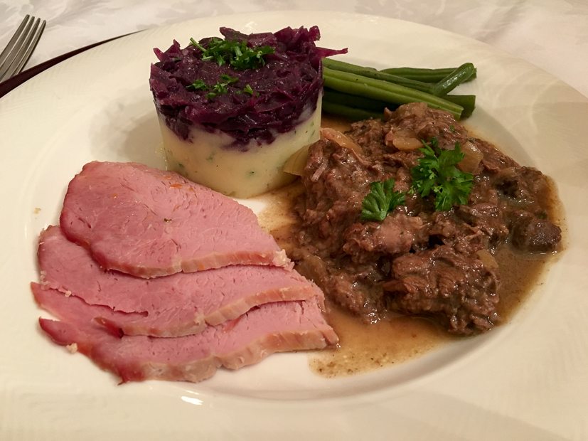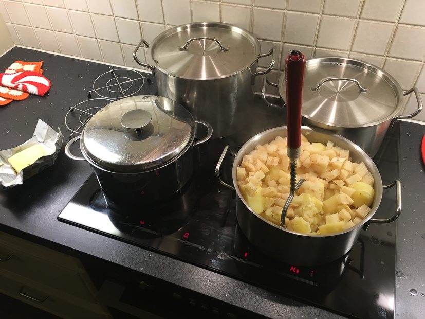 Als Johan ’s avonds thuiskomt uit zijn werk, rijden we direct door naar mijn ouders. Mijn moeder heeft zichzelf overtroffen en heeft alles uit de kast getrokken voor het verjaardagsdiner. Het hoofdgerecht bestaat uit knolselderij-aardappelpuree, sperziebonen, rodekool, beenham en stoofvlees.