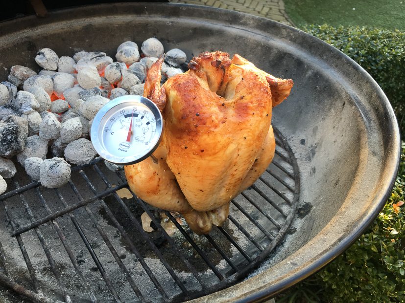 De rest van de dag blijven we thuis. Johan steekt ’s middags de vuurkorf aan en later ook de Weber. Op het menu vanavond staat kip op bierblik van de barbecue.