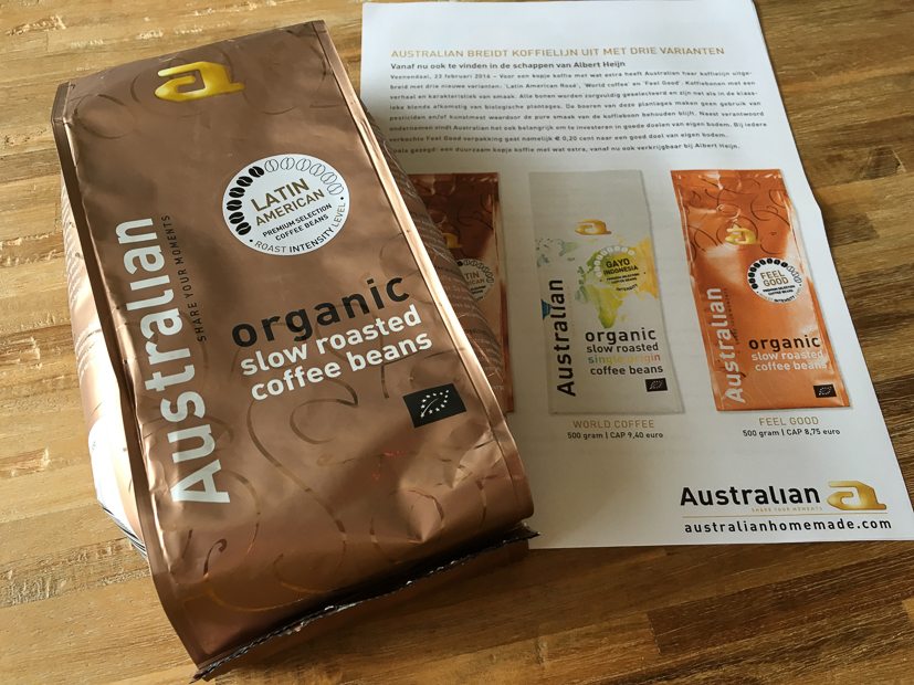 Van Australianhomemade.com krijg ik een zak biologische slow roasted koffiebonen Latin American. Ik ben erg benieuwd naar de smaak van deze bonen: slow roast koffiebonen zijn op een lagere temperatuur gebrand, waardoor er een sterker aroma vrij komt. Ik laat de zak nog even dichtzitten: de oude koffiebonen moeten eerst op. Wordt vervolgd. 🙂