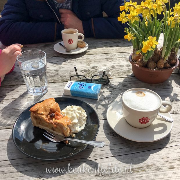 We fietsen over de dijk naar Ophemert. Bij Het Dijkhuis strijken we neer voor een kop koffie en appeltaart. Helaas geen zelfgemaakte.