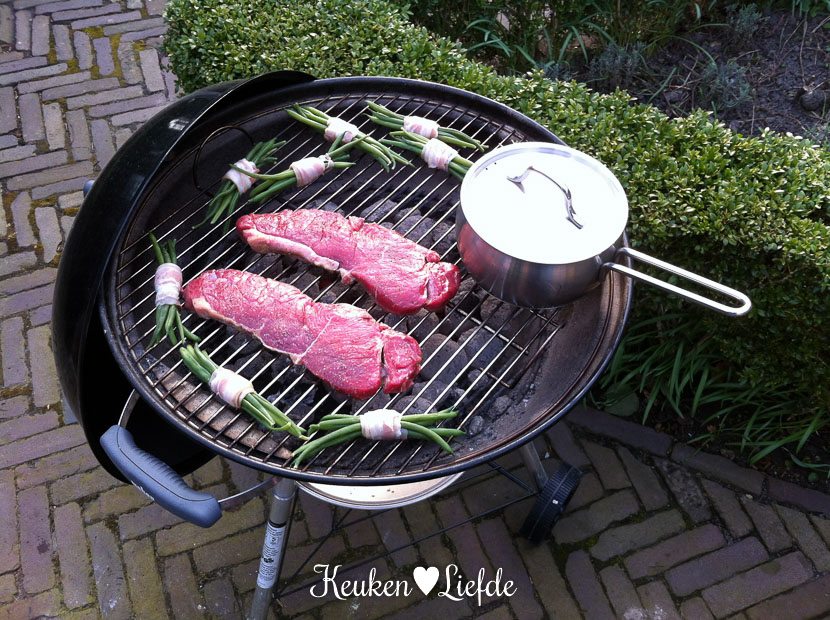 ’s Middags ga ik boodschappen doen. Ik haal bij de slager 2 dikke entrecotes voor het nieuwe Spijs & Wijn gerecht entrecote bordelaise. Omdat het zulk prachtig weer is bereid ik het gehele gerecht – behalve de aardappelgratin – buiten op de Weber. Het is een heerlijke avond.