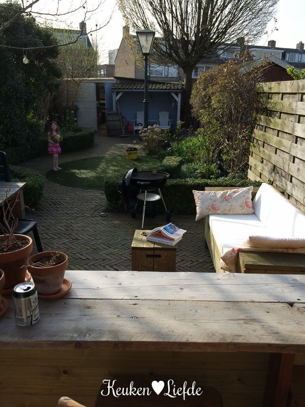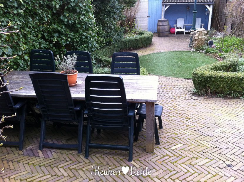 Het is zulk waanzinnig lekker weer dat ik om twee uur ’s middags besluit de laptop aan de kant te gooien en naar buiten te gaan. Het grote voordeel van thuiswerken! Ik rommel lekker in de tuin en leg voor het eerst dit jaar de kussens weer op de loungebank.