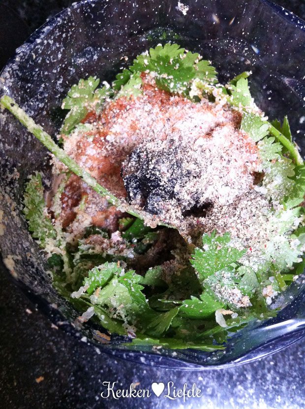 Ik begin ’s ochtends direct met het marineren van de kip voor het avondeten. Op het menu staat het lievelingsgerecht van Johano en mij: Oosterse wraps met gemarineerde en gegrilde kip, flinterdun gesneden witte- en rodekool, lente-ui en zoete chilisaus. Het geheim van dit gerecht is deze marinade. Die is zó lekker!