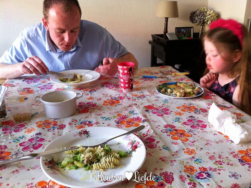 Voor het avondeten maak ik een Speels & Smakelijk kinderrecept: pasta met broccoli en saucijsballetjes. Wauw, wat een topper! Deze gaat direct op onze favorietenlijst. Het recept komt volgende week woensdag online.