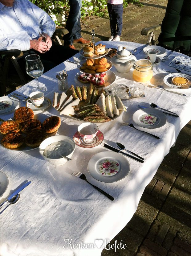 Na de zwemles van El rijden we naar mijn ouders. De overige high tea recepten maak ik daar, zodat we er ’s middags met z’n allen van kunnen genieten. Het is prachtig weer, maar ik merk er weinig van. Ik breng de hele middag door in de keuken.