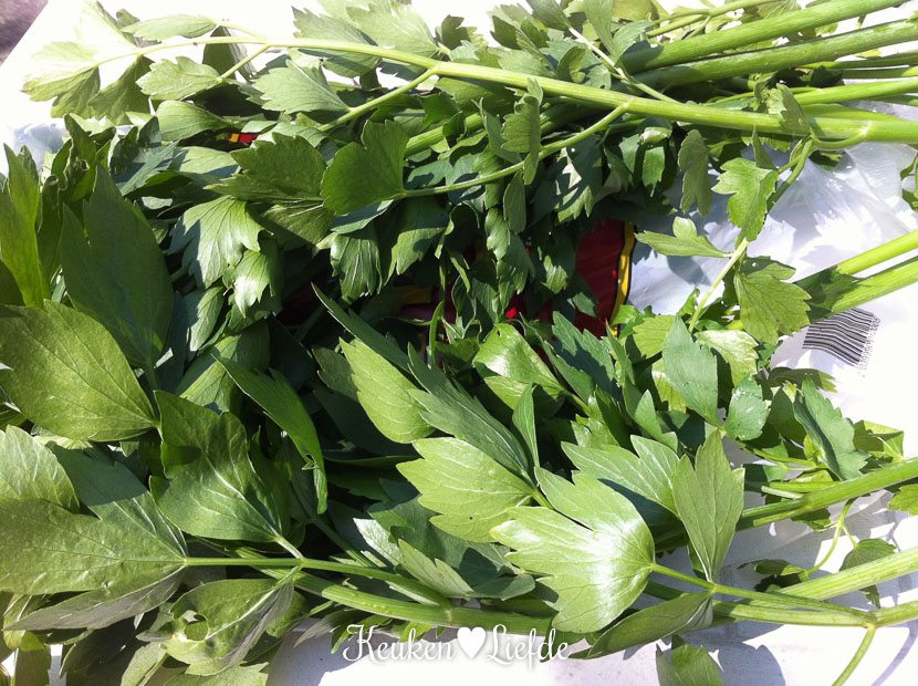 ’s Middags halen we bij de opa en oma van Johan maggiekruid (lavas) op. Er groeit een hele struik in hun tuin, waar ze niks mee doen. Dat laat ik me natuurlijk geen tweede keer zeggen! Maggiekruid geeft een heerlijk aroma aan zelfgemaakte bouillons, sauzen of kruidenboter.