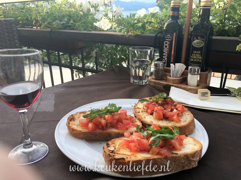 We bezoeken ’s ochtends de markt in Desenzano — een stadje aan het Gardameer — en laten ons verleiden tot het kopen van een aantal lokale producten zoals worst (een kilo!), kaas en groenten.