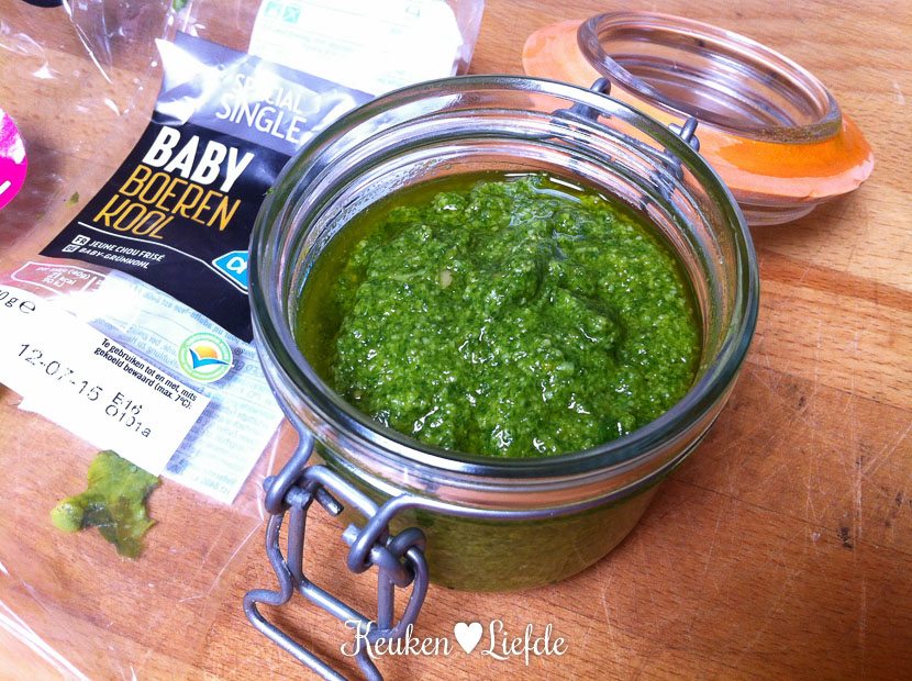Zondag mag voor veel mensen dan misschien een rustdag zijn, in huize Verweij wordt er gewerkt. Ik typ wat berichten uit, maak de badkamer schoon en maak van het overige zakje baby boerenkool, groene pesto.