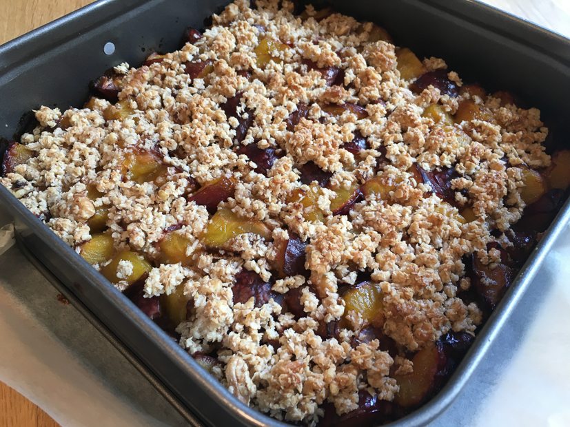 Ik breng Ella-Marie ’s ochtends naar mijn schoonmoeder. Neefje Levi is er ook en ze gaan gezellig een dagje naar de dierentuin! Ik werk de hele dag thuis. ’s Avonds bak ik nog een pruimentaart. De vorige was alweer op en smaakte naar meer. (In plaats van pruimen kun je ook ander zacht zomerfruit toevoegen!)
