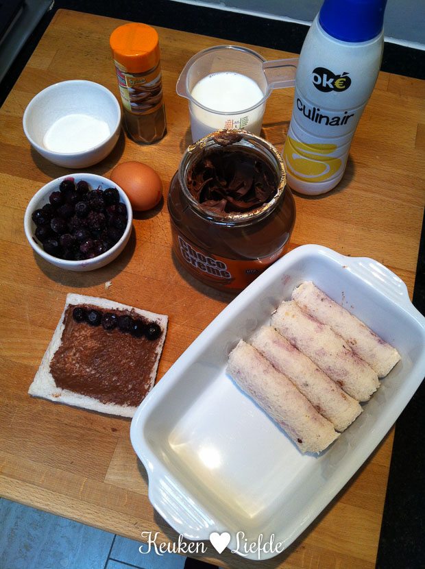 Aan het eind van de ochtend tref ik de voorbereidingen voor een smakelijke lunch met mijn dochter. Als ik Ella-Marie uit school heb opgehaald hoef ik de wentelteefrolletjes alleen nog maar te bakken. Mmmmm … de broodrolletjes zijn gevuld met chocopasta en fruit en smaken zelfs nog beter dan ze eruitzien! Ook dit recept zie je binnenkort voorbij komen in Speels & Smakelijk.