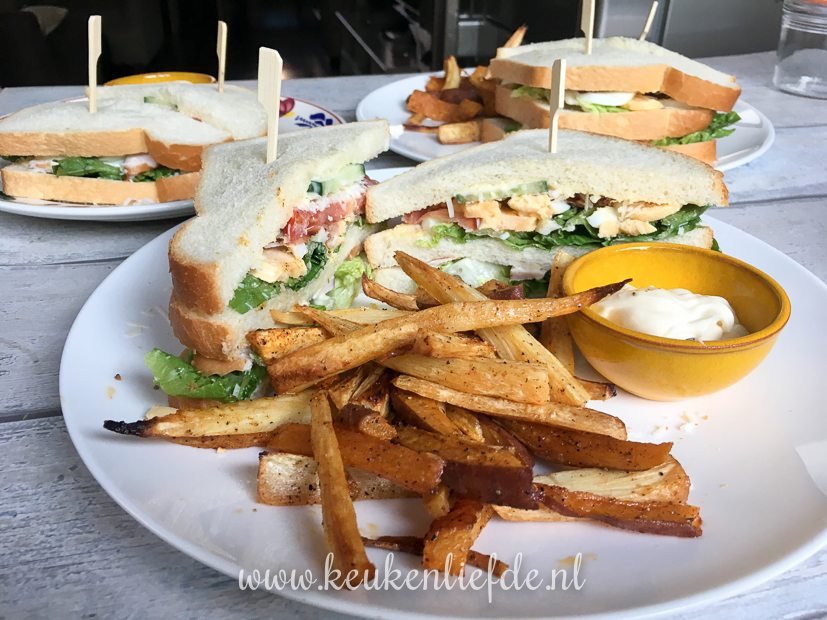 ’s Avonds kookt Johan. Op het menu: club sandwich en groentefrietjes (pastinaak en zoete aardappel)! Jammie!