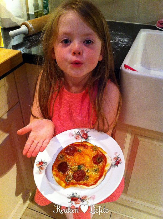 Als we thuiskomen maak ik voor Ella-Marie een pizza’tje. Ze mocht vandaag kiezen wat ze wilde eten en hoefde daar geen seconde over na te denken. Precies haar moeder.